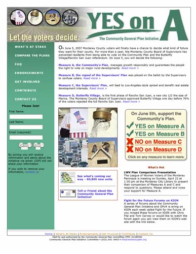 - For more details CLICK here for the Monterey County Herald's December 20, 2006 story, "GENERAL PLAN MAY GO TO VOTERS" on their web site, www.montereyherald.com (external link).