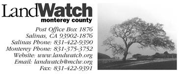 LandWatch will keep the public informed about the status of land-use planning in the county. We will monitor the local government agencies responsible for land use decisions, and participate in the public process to promote land use policies that protect the environment, and that will maintain economic vitality. LandWatch is the only professionally-staffed nonprofit organization in Monterey County dedicated solely to this mission.