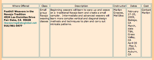 Marilyn Greaves and Mel Silva's Navajo Weaving Workshops