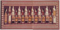 At the request of the Academy's Anthropology Department in 1978, Bruce C. Belknap adapted a traditional design for a saddle blanket about 40 inches square and wove this specific tapestry up to the present weaving line with these Navajo hand-made tools. The wool yarn in the basket is waiting to finish the weaving at any time. A personal ceremony was performed for releasing the partially woven tapestry to be viewed by the public. Search the Anthropology Database (Full Records) for Catalog Number CAS 0425-0280.