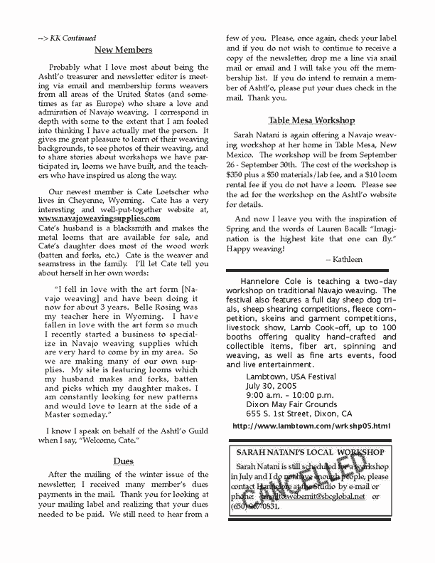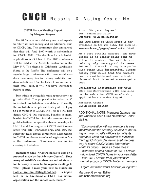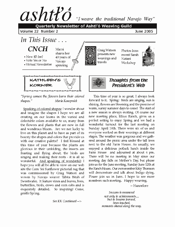Hannelore Cole - Thoughts from the President's Web, June '05