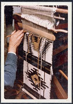 Second half (with original design) of Bruce's first weaving following the text and diagrams in Working With the Wool by Noël Bennett and Tiana Bighorse. |