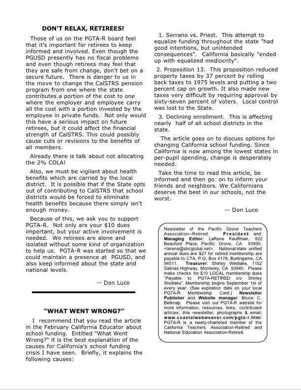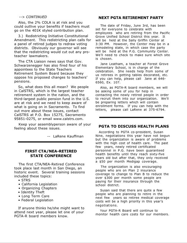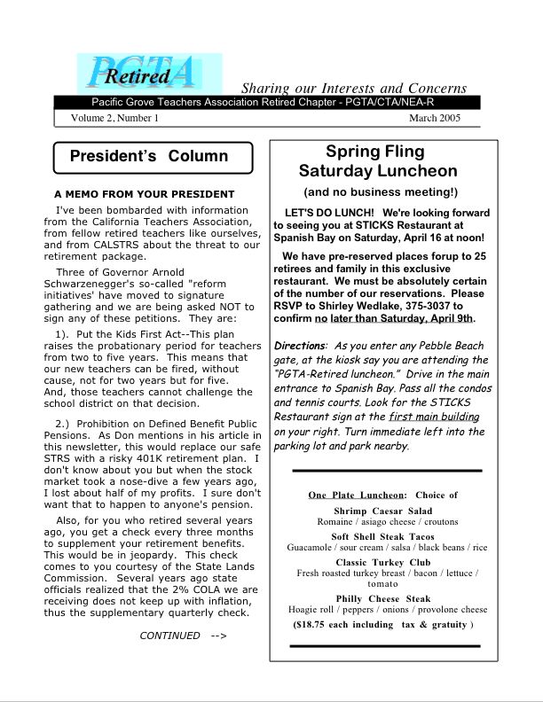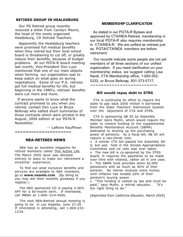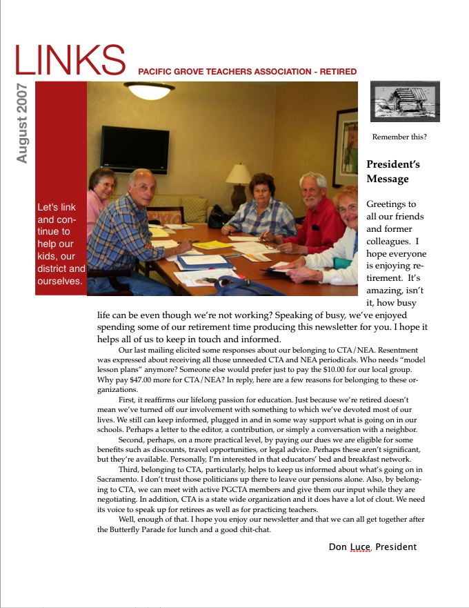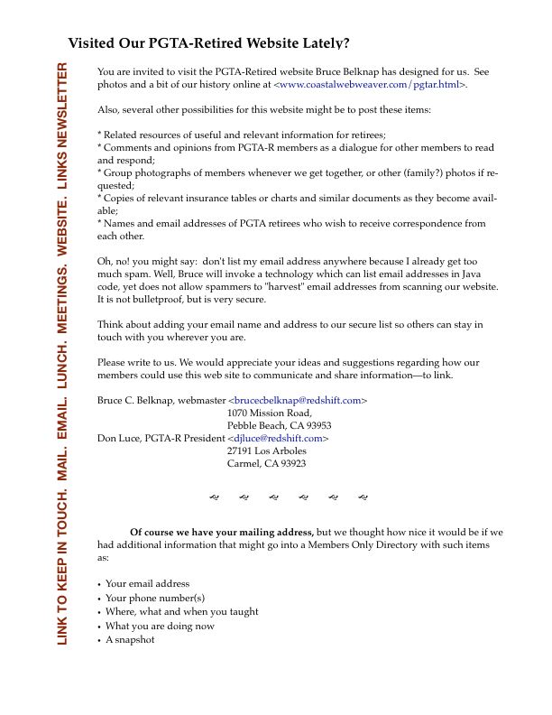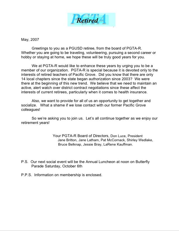 Reasons discussed for us to form a PGTA-Retired chapter include: